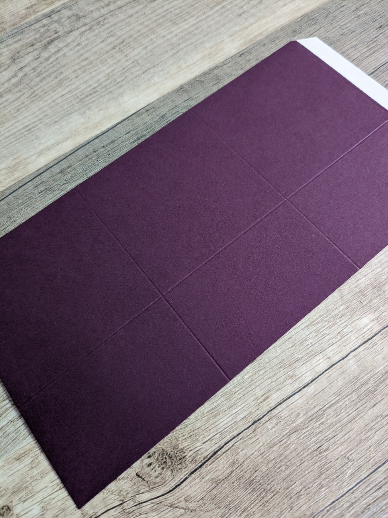 Nun geht es an die stehende Wand. Hierfür benötigt ihr Farbkarton in der Größe 22 cm x 18,9 cm. Falzt dieses an der kurzen Seite bei 6,3 cm, dreht es einmal um und wieder bei 6,3 cm, so dass wir drei Teile á 6,3 cm bekommen.